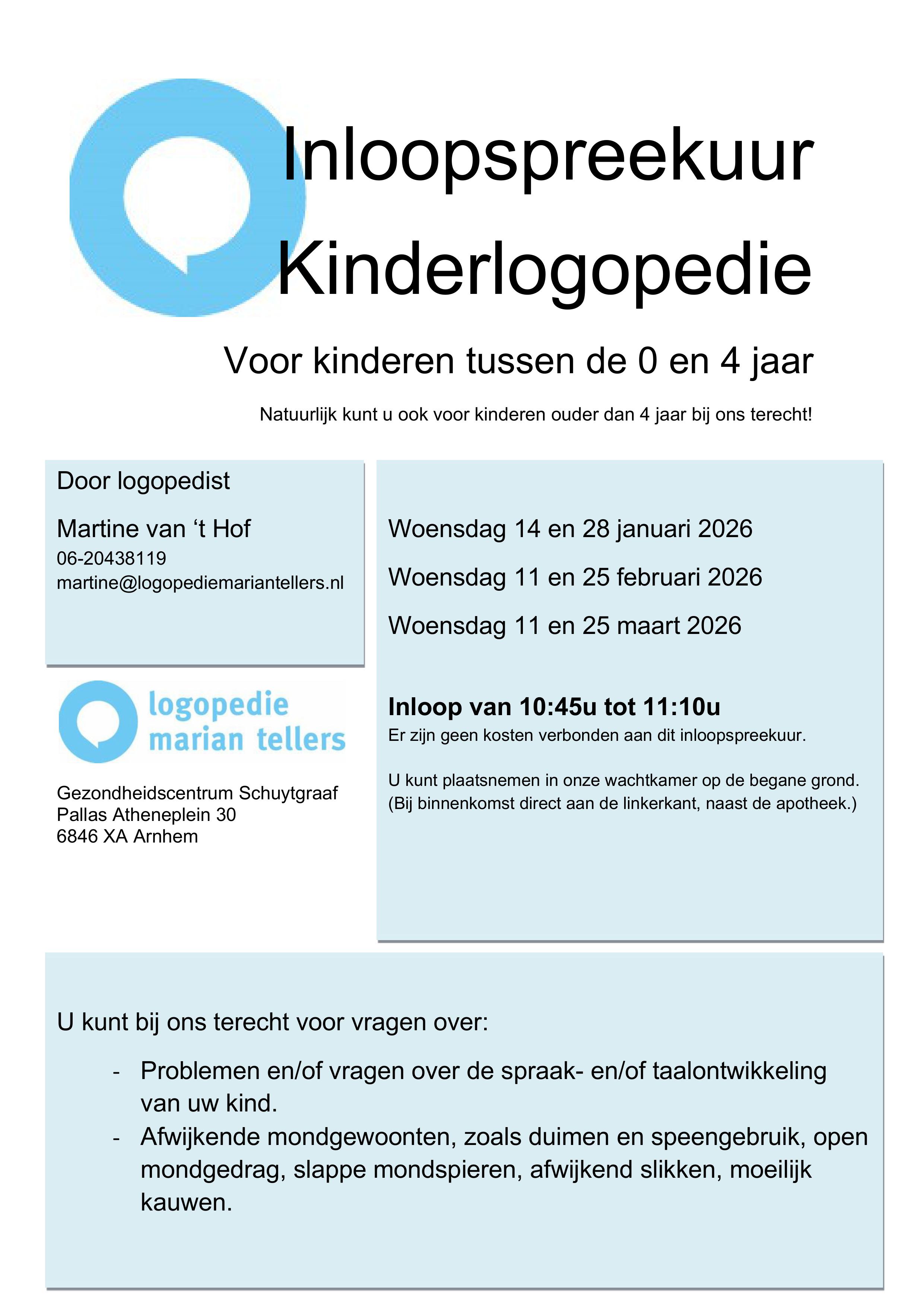De inloop-spreekuren kinderlogopedie zijn er weer, ook in de praktijk in de Schuytgraaf te Arnhem.