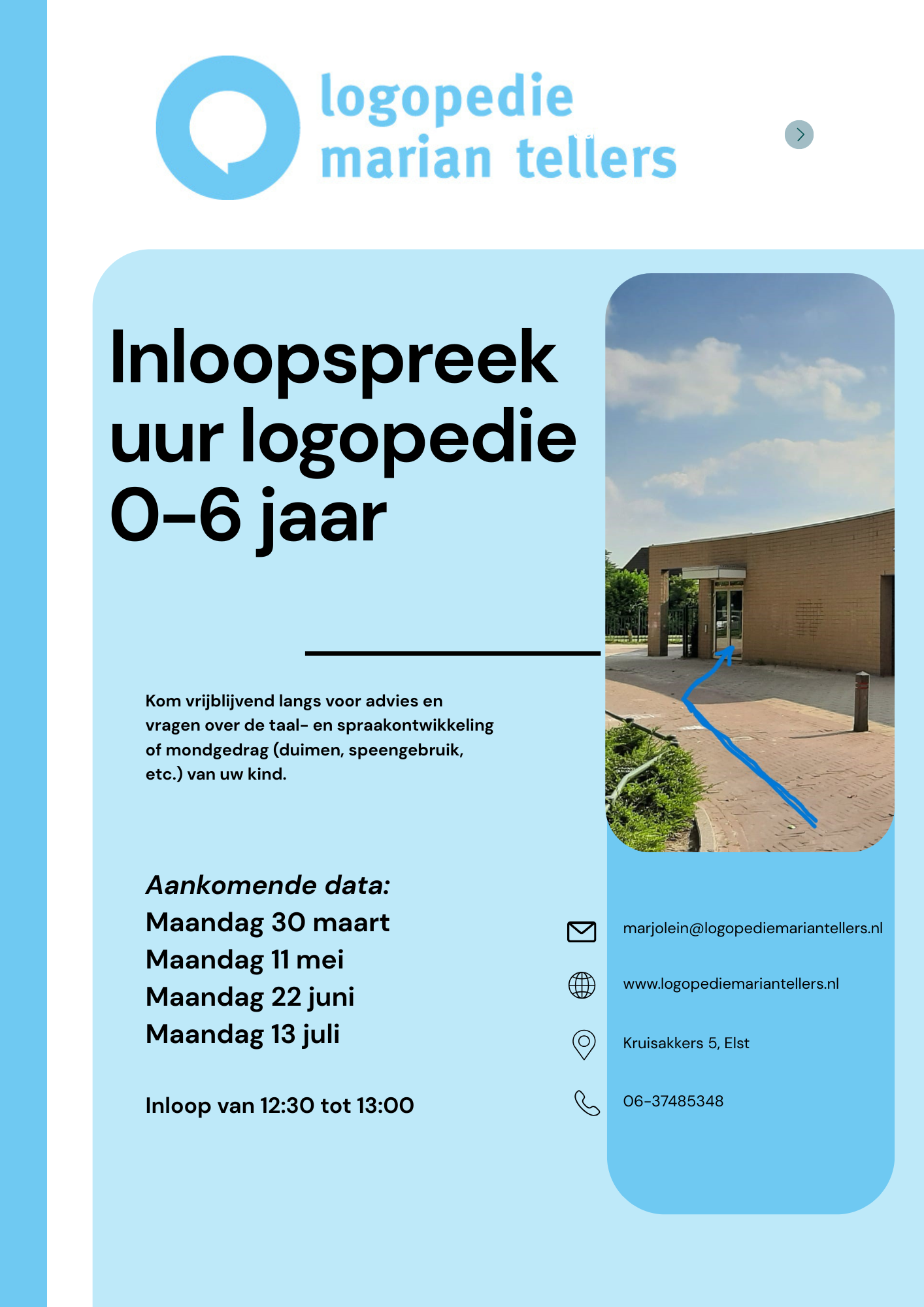 De inloop-spreekuren kinderlogopedie zijn er weer, nu ook in de praktijk in de Kruisakkers te Elst.